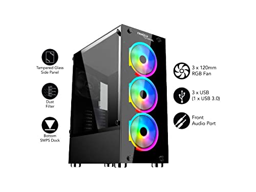 Frontech Gaming Cabinet Computer case with 3x120mm RGB LED Fan Panel with Transparent Tempered Glass Side Panel (Frontech Gaming Cabinet Used)